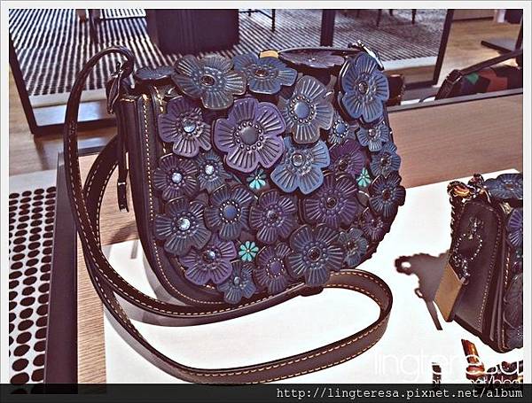 這款 Coach 1941 系列編號 38195 的SADDLE 23茶花立體貼花手袋真的是很漂亮。 一進門就看到她了,就忍不住直接向她走過去。 先來看看官網的介紹: